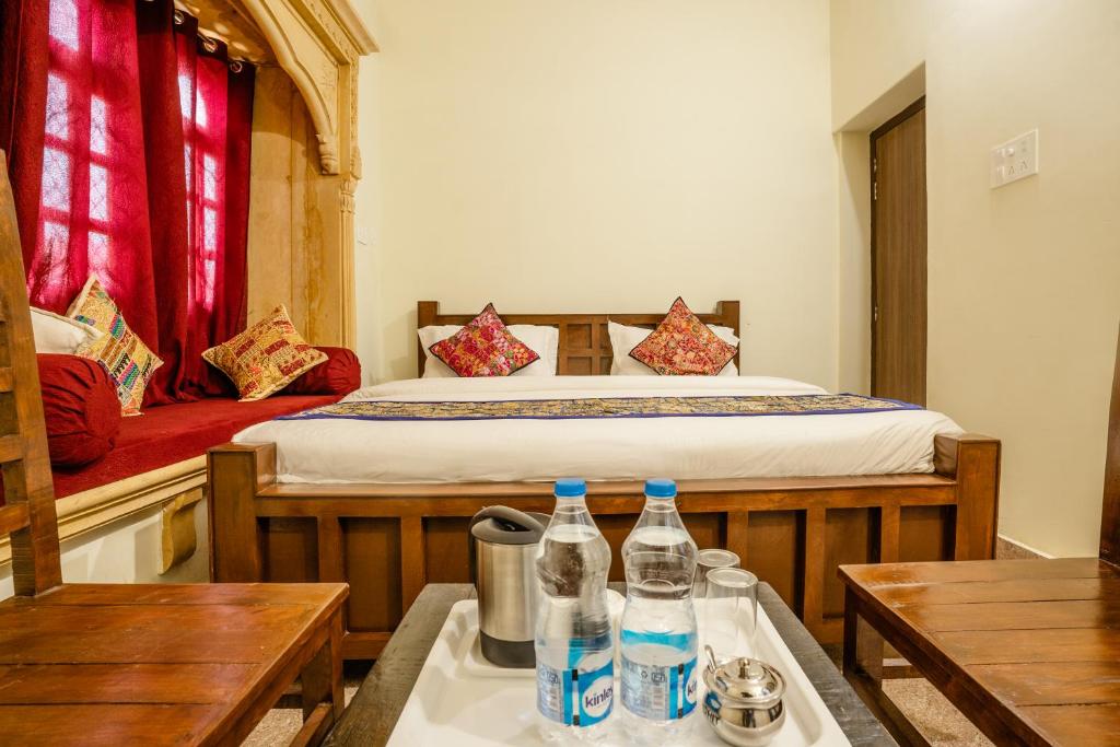 +91 9001750614A Well decorated queen room featuring sand‑stone style architecture, AC, flat-screen TV, private bathroom with hot water, and free toiletries .Many rooms include balconies or terraces with views of the Fort . Complimentary Wi‑Fi, free private parking, 24‑hour front desk, laundry/dry servicing, and a shared lounge.